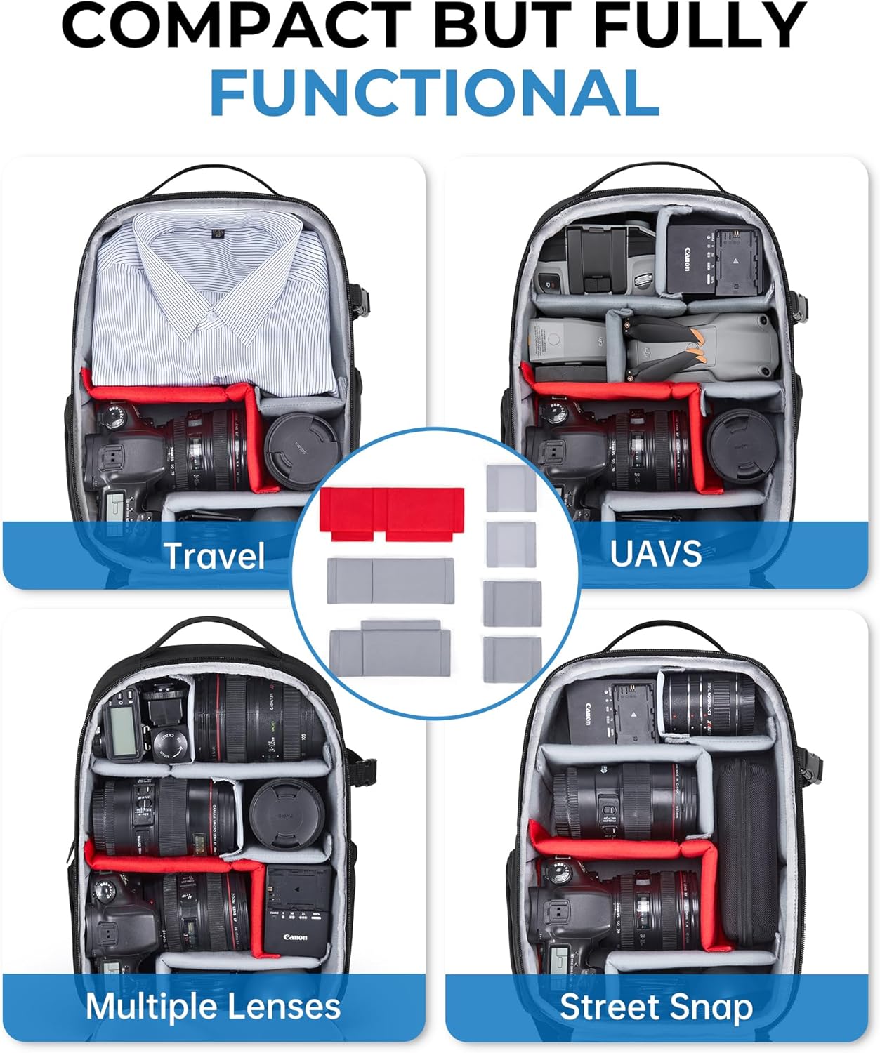 Constructed with durable and water-resistant materials, this anti-theft photography backpack will keep your gear safe and secure. The included rain cover provides additional protection against the elements, ensuring your equipment stays dry in any weather conditions.